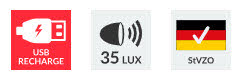 Dieses Beleuchtungsset High Power USB 35 LUXerfüllt die hohen deutschen Normen der StVZO. Außerdem ist dieses Set über ein mitgeliefertes Kabel per USB wiederaufladbar. Das Frontlicht hat 35 LUX und das Rücklicht hat eine starke LED. Der Scheinwerfer hat zwei Leuchtmodi: 100% und 50%. Das Set verfügt über eine Warnleuchte bei niedrigem Batteriestand. Das Beleuchtungsset ist einfach und ohne Werkzeug am Fahrrad zu montieren. Das Set ist in einem Displaykarton verpackt.
