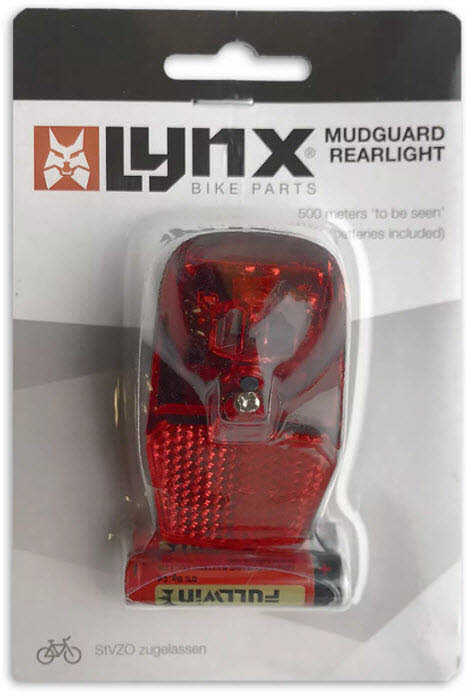 Das Compact-Rücklicht von LYNX erfüllt die hohen deutschen Normen für Fahrradbeleuchtung nach der deutschen Gesetzgebung. Das Rücklicht wird mit 2 AAA-Batterien geliefert und ist in einer Blisterpackung verpackt. Es ist einfach zu montieren und kann bis zu 500 Meter weit gesehen werden.